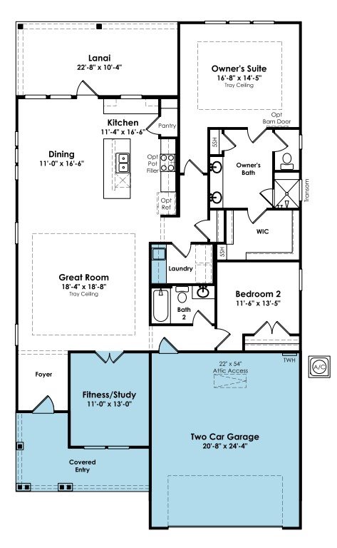 Discover easy living in this thoughtfully designed Grace floorplan, perfectly suited for a 55+ Active Adult lifestyle. This 2-bedroom, 2-bath home includes a private Study with elegant glass French doors, ideal for hobbies or a home office. Enjoy a Gourmet Kitchen featuring upgraded cabinetry, quartz countertops, and premium GE Profile appliances. Shaw EVP flooring enhances the main living areas, while Bedrooms offer cozy carpet and Baths and Laundry Room feature tile. Added conveniences include a Laundry Base Cabinet with Sink and a 4’ Extended Garage for abundant storage. The home backs to a common area with a berm for added privacy and is just around the corner from Walking Trails, the Amenity Center, and a future Community Garden.