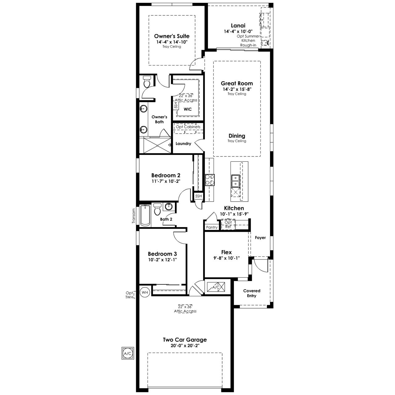 Designer finishes continue throughout the home with plank tile flooring in main living areas, laminate wood plank flooring in the flex space and owner’s suite, and floor-to-ceiling accent tile in all bathrooms, including a frameless shower in the owner’s bath. Additional details such as upgraded fixtures, a floor outlet in the great room, washable interior paint, and an impressive 8-foot front door with a Smart WiFi keypad complete this inviting home.