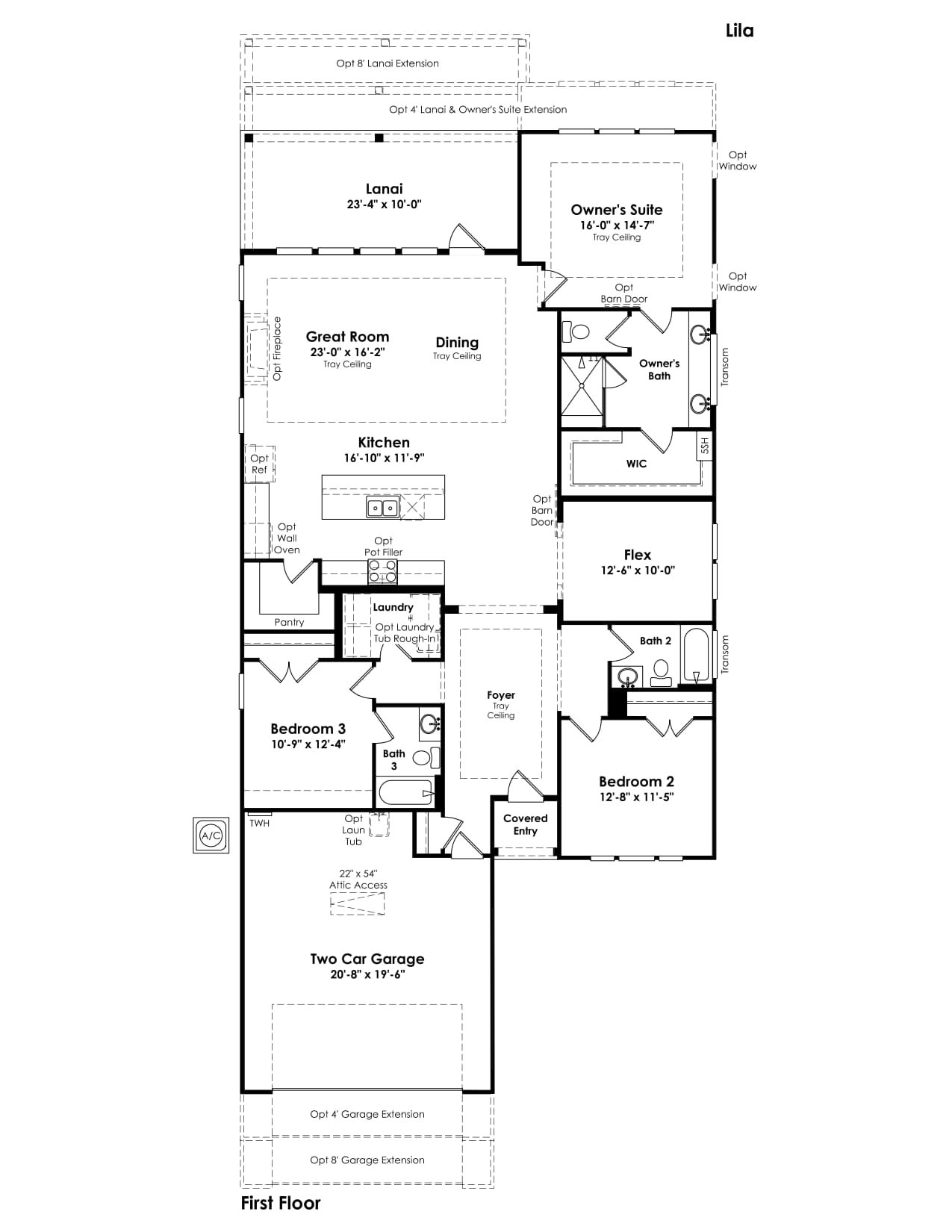 Entertainers laud the Lila for its large, centrally located Kitchen. The wide island overlooks the Great Room and Dining area with open views out to the Lanai with windows across the back of the home. The Kitchen also gives the chef in your family lots of space to work with and house their tools of the trade with ample countertop area, cabinetry and a walk-in pantry.
