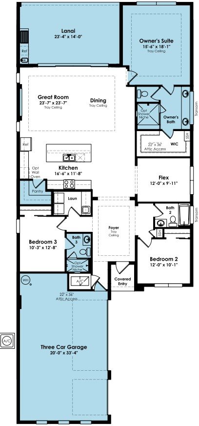 This brand-new Leslie floorplan, built by Kolter Homes, is situated on a southern facing homesite in the new 55+ Esprit community. The home includes 3 bedrooms, 3 bathrooms, and a 3-car garage. The owner’s suite and lanai have been extended by 4’ to increase both indoor and outdoor living space, and a 16-foot wide by 10-foot tall sliding glass door connects the great room to the lanai, which also features an outdoor summer kitchen.