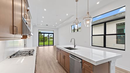 This versatile 3 Bedroom, 2 Bath floorplan provides an open main living space and options built to accommodate families of any size and structure. A spacious main living area overlooks the Covered Lanai through a large triple slider, while the Owner’s Suite provides you with privacy in the rear of the home. You can personalize this floorplan with structural options, including Extended Garage, Owner’s Suite 2, In-Law Suite, Summer Kitchen, second-story Bonus Room, and more. To learn about all the ways you can have this home built around you, contact a PGA Village Verano New Home Guide.