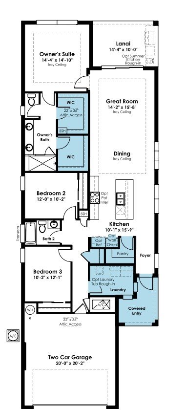 This versatile 3 Bedroom, 2 Bath floorplan provides an open main living space and options built to accommodate families of any size and structure. A spacious main living area overlooks the Lanai through a large triple slider, while the Owner’s Suite provides you with privacy in the rear of the home.
